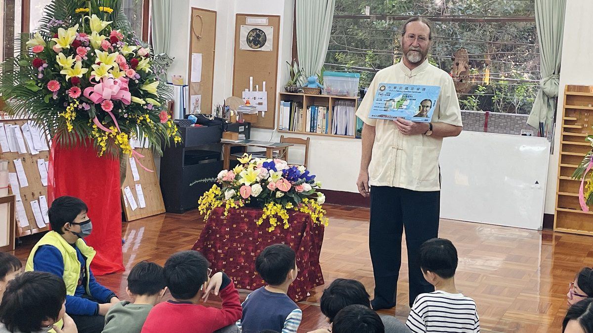 ▲梅世傑先生用蒙特梭利教學希望透過教育協助孩子幫助自己。(圖/移民署提供)