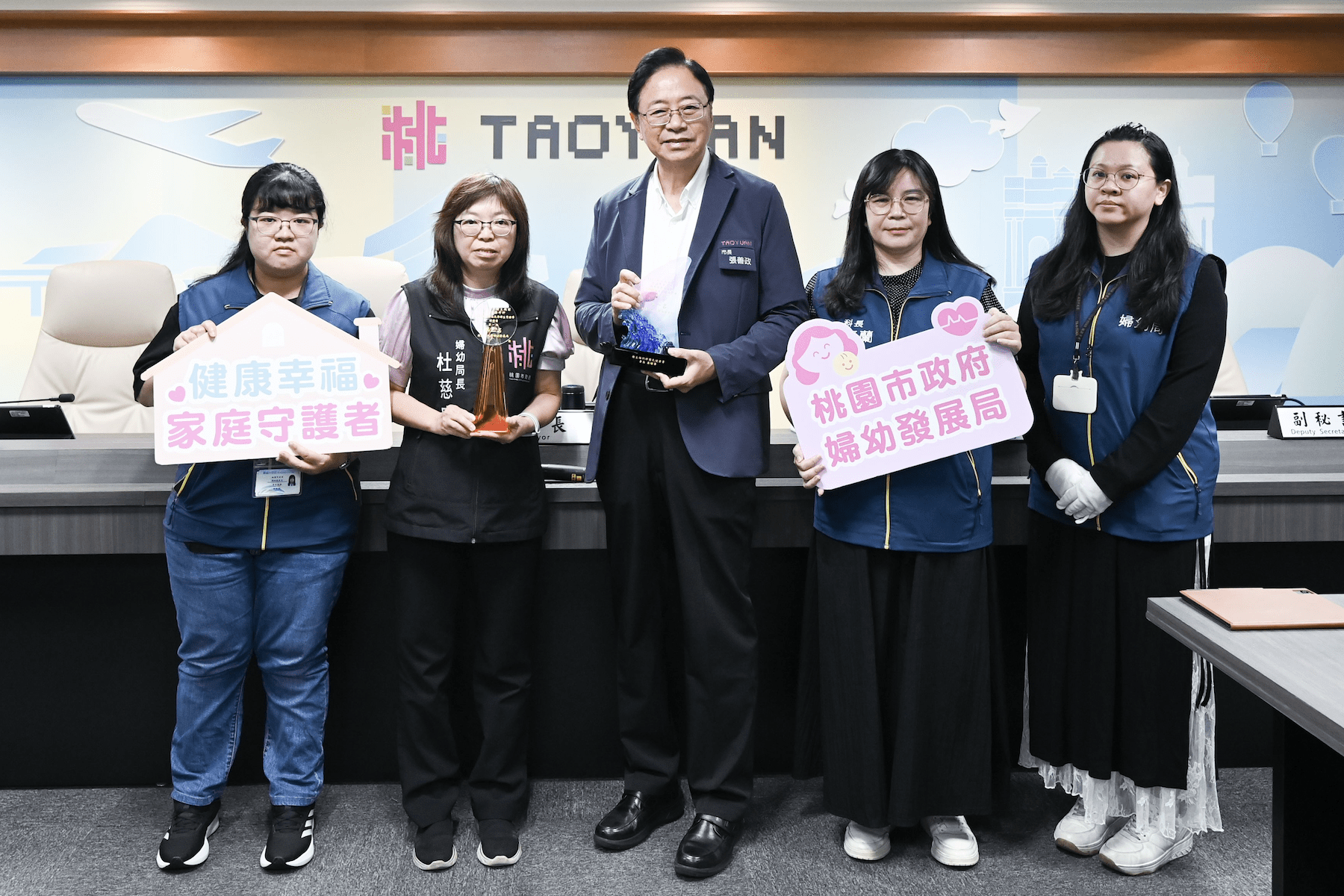 桃園市長張善政今(9)日上午主持市政會議,接受婦幼發展局呈獻榮獲衛生福利部「113年地方衛生機關業務考評作業計畫」婦幼健康促進考核項目績優獎項時表示,婦幼局自成立以來已逾一年半,期間積極推動多項創新且具前瞻性的婦幼友善政策,成果豐碩,不僅創下多項全臺首例,也成為其他縣市爭相仿效的對象。張善政感謝婦幼局全體同仁從草創之初就全力以赴、默默耕耘,並期許團隊未來持續精進,為桃園婦幼打造更完整且溫暖的照護體系。