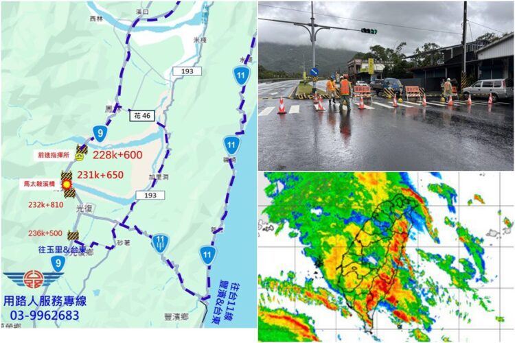 東區養護工程分局表示,台9線實施封閉路段,管制南下、北上各開放一個內側車道供車輛通行,後續將視水位變化不排除全線道路封閉通行。呼籲用路人,利用替代路線行走台11線。