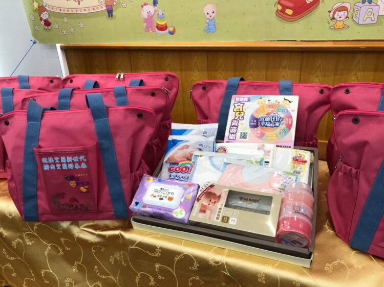 幸福親子包,包內裝有奶瓶、奶粉分裝罐、毛巾、濕紙巾、圍兜兜…等嬰兒所需用品,提醒新手爸媽外出應準備哪些用品,讓小寶貝外出時不怕漏東漏西。幸福親子包除了提醒新手爸媽外出應準備哪些用品外,也可分擔家庭照顧的壓力,更可以提升嬰兒照顧的品質。幸福親子包是個「敲門磚」免申請,針對未成年小爸媽、低收入戶及中低收入戶、身心障礙者、特殊境遇弱勢家庭及設籍前領有社會救助或特殊境遇之新住民等資格,提供90小時免費到宅坐月子服務,服務內容包含:產婦照顧、幼兒照護、簡易家務整理、月子餐製作等。另本專案同時運用即時通(Line)軟體提供諮詢關懷協助,並且亦創造縣內中高齡二度就業婦女工作機會。