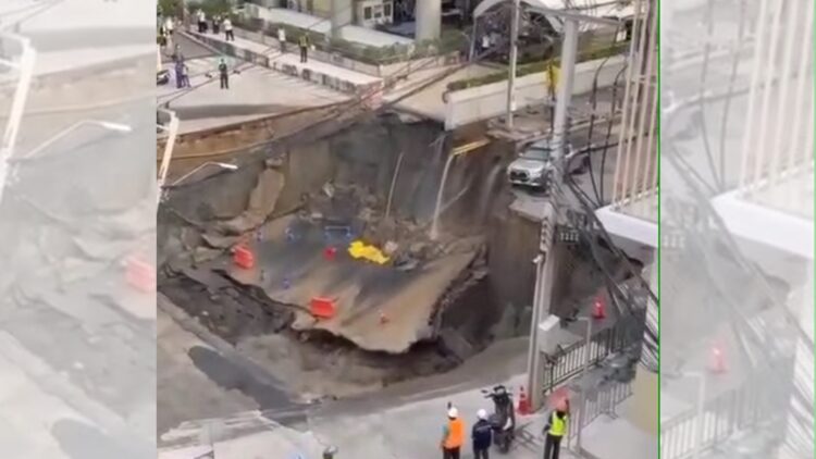 泰國曼谷杜斯區9月24日上午7時45分發生嚴重的道路塌陷事故,位於瓦集拉醫院前的三善路前,出現一處面積達30×30公尺、深度約50公尺的巨型坑洞,造成兩根電桿倒塌和一台警用吊車墜落,事發地點正好鄰近捷運延伸段瓦集拉醫院站的工地,初步研判事故與地鐵施工有關。