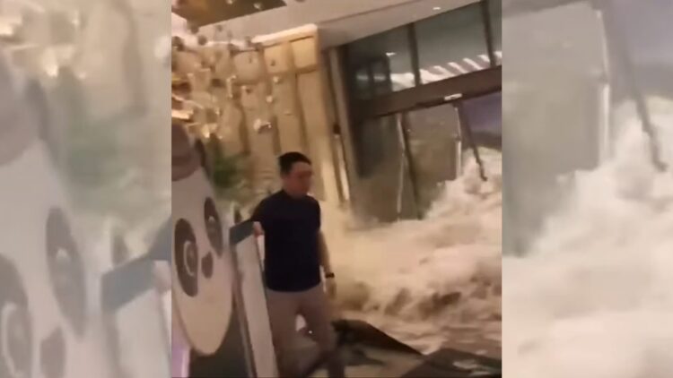 影音/颱風樺加沙廣東登陸 香港酒店海水沖爆玻璃門