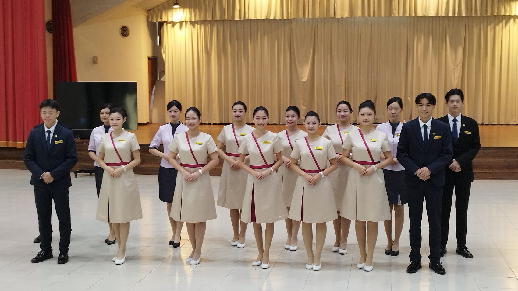 此次受派的學生皆為校內親善大使團成員。他們不僅熟悉國語、台語、客語,更具備英語、法語、德語、西班牙語、日語、韓語與越南語等多國語言能力,能靈活應對國際來賓的多元需求。為展現專業與自信,校方特別設計全新禮賓制服,以香檳金作為主色調,象徵高貴典雅,再以紅色絲帶點綴,代表熱情洋溢的人情味,完美結合禮儀專業與高雄特色。