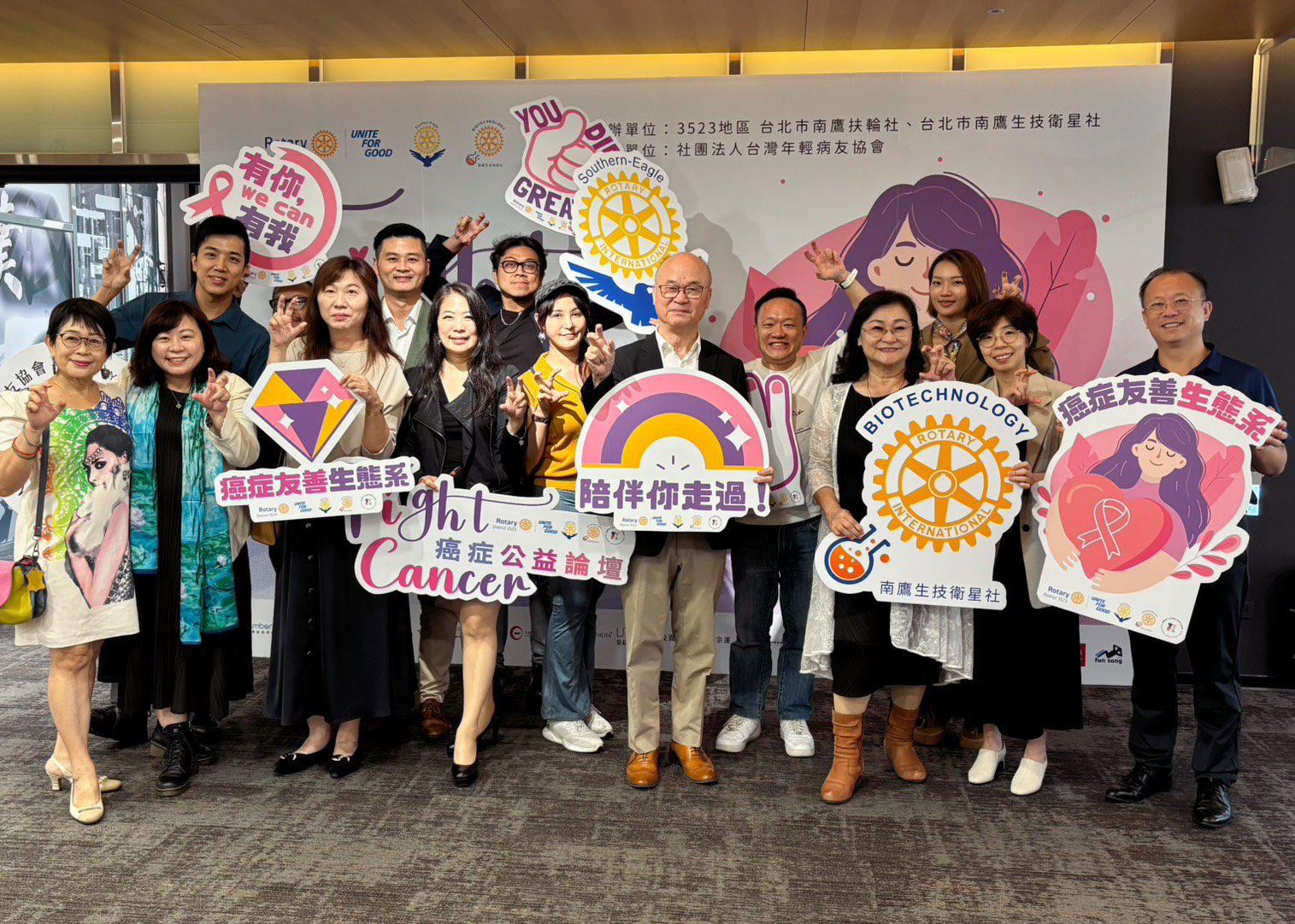 為喚起防癌意識、支持癌友及家屬,並推動跨界合作,打造癌症友善生態系,台北市南鷹扶輪社、南鷹生技衛星社,協同社團法人台灣年輕病友協會,9月27日舉辦「癌症希望公益論壇」,以「想像健康、傳遞希望、守護生命」為核心,邀請癌友與陪同家屬免費參與,同時啟動公益募款計畫,號召社會各界共同響應,募款投入癌症知識推廣、贊助病友團體活動及癌友復健照護資源,讓愛的力量成為癌友與家屬的後盾,獲得30多家企業品牌熱情贊助,共襄盛舉。