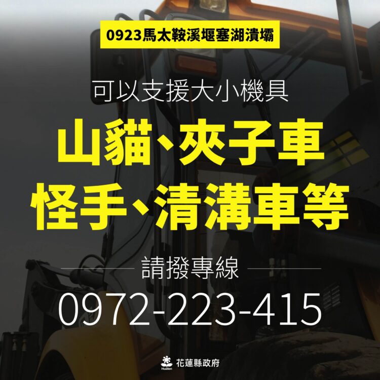 縣政府強調,防災救援不僅是政府的責任,更需要社會各界攜手參與。凡有意願提供重型機具或協助操作志工,請立即與防災救災中心聯繫,專線電話:0972-223-415。