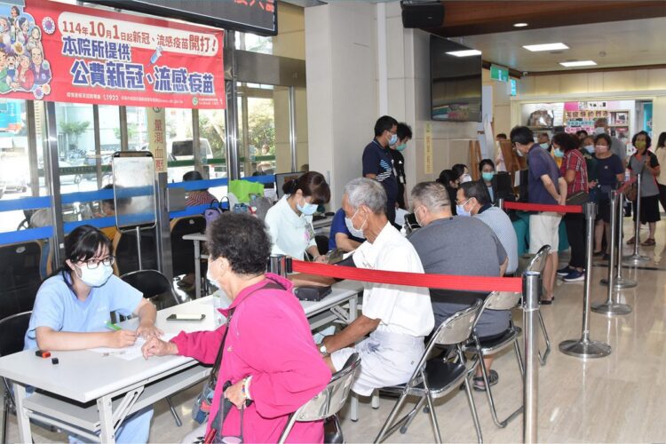 公費疫苗分階段開打,首波自 10 月 1 日起,對象包含 65 歲以上長者、55~64 歲原住民、孕婦、BMI≧30 或具慢性病、重大傷病患者及醫療防疫人員;11月起再開放 50~64 歲健康成人。成人肺炎鏈球菌疫苗則針對 65 歲以上長者、特定高風險族群及洗腎病人。施打地點在總院一樓大廳,週一至週五上午 8:30–12:00、下午 14:00–17:00,週六上午 8:30–12:00,服務至疫苗用罄。