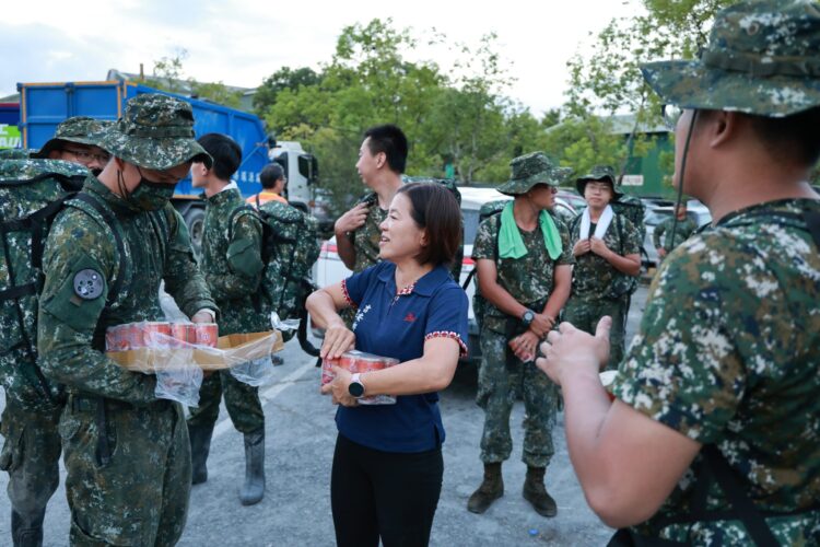 ▲吉安鄉長游淑貞協助發送國軍與志工愛心便當。