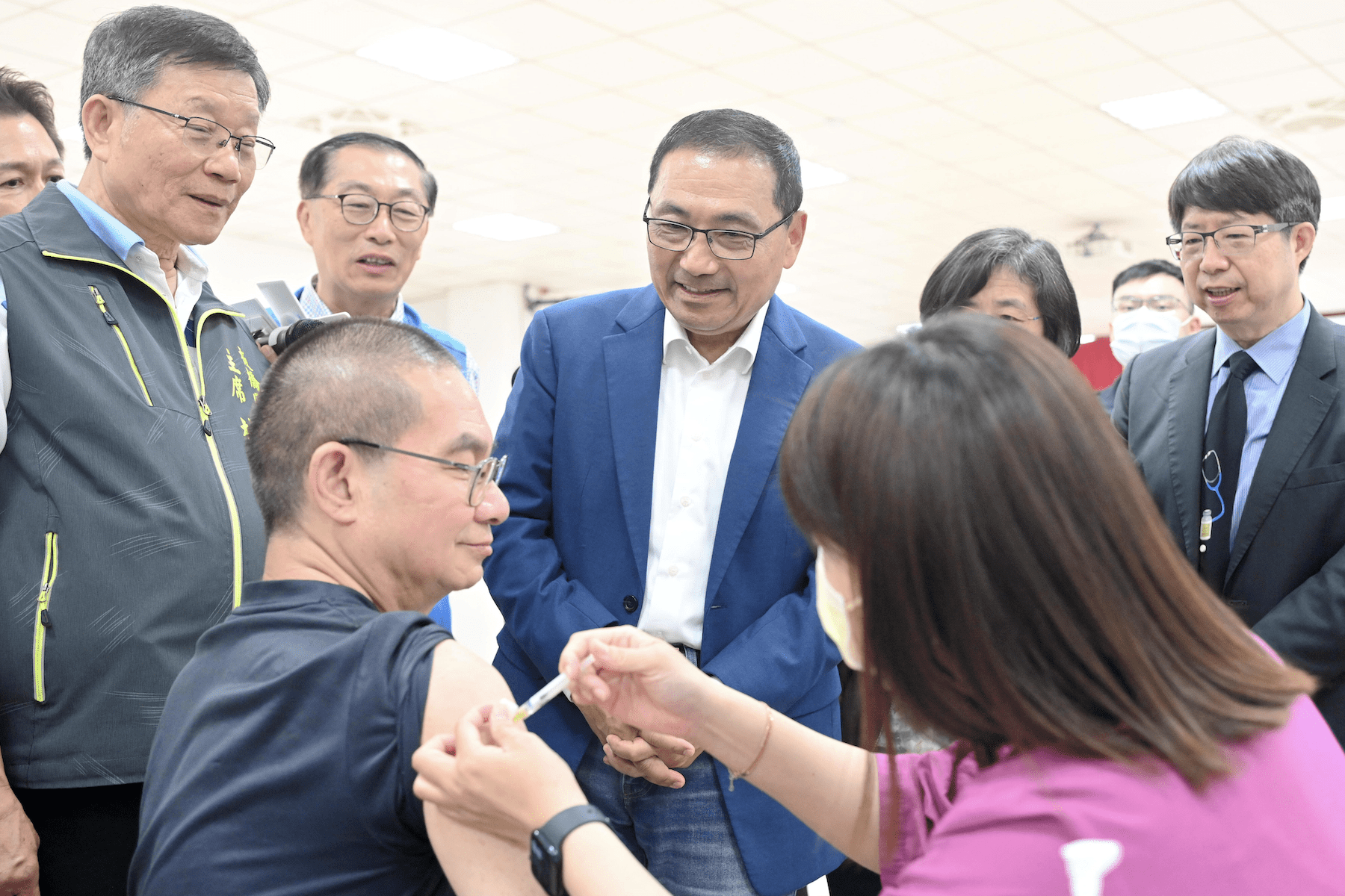 新北市今(114)年公費流感疫苗及COVID-19疫苗自10月1日起同步開打,市長侯友宜今(1)日前往板橋區國光公園市民活動中心視察疫苗接種情形,鼓勵民眾「左流右新」同時接種兩種疫苗,守護自己及他人健康。