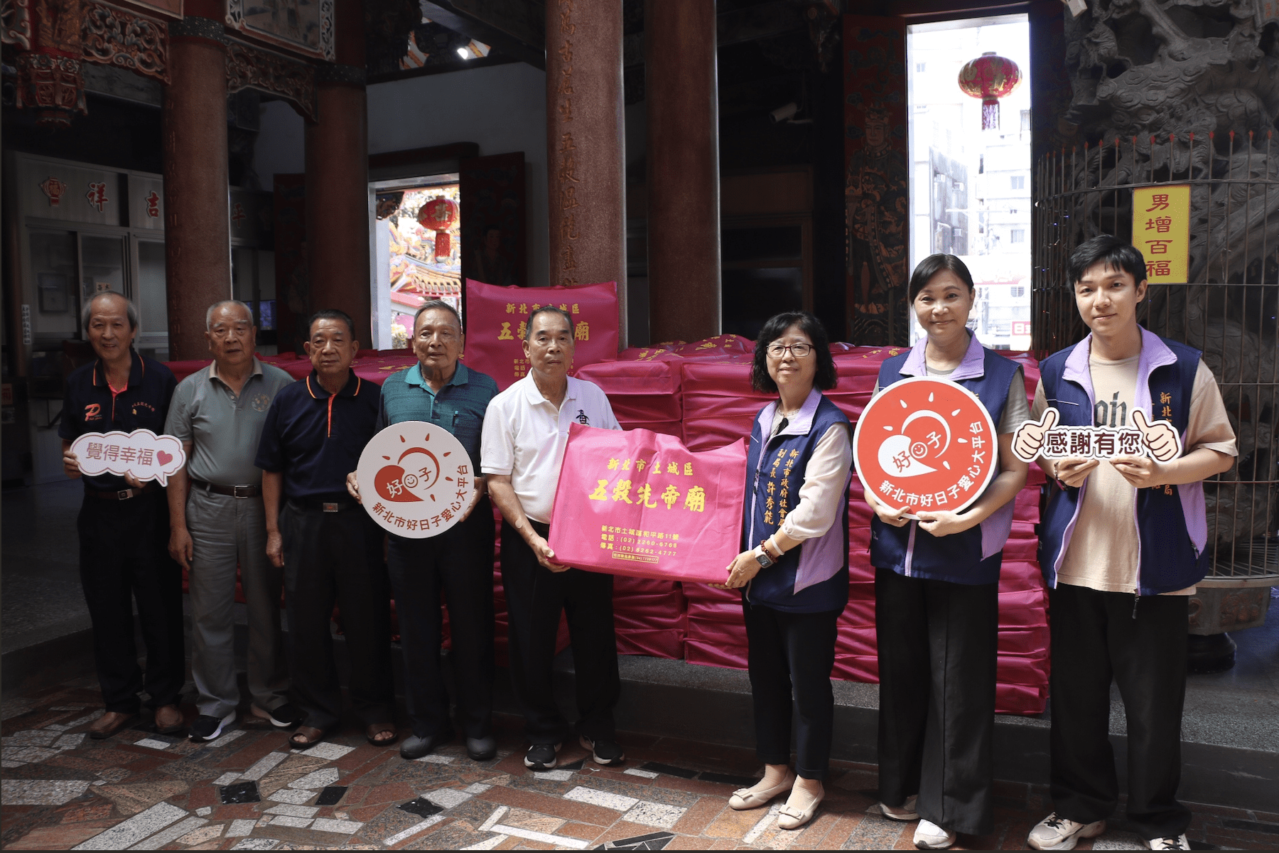 位於土城區的五穀先帝廟,以奉祀教耕稼、嚐百草、造民曆的神農炎帝為主神,於中秋節前夕,捐贈360箱民生物資及800斤白米,給新北市社會局實物銀行,由社會局副局長許秀能代為受贈,將轉送給土樹三鶯地區服務在案中的弱勢家庭,另白米則提供給老人共餐點和社福機構。