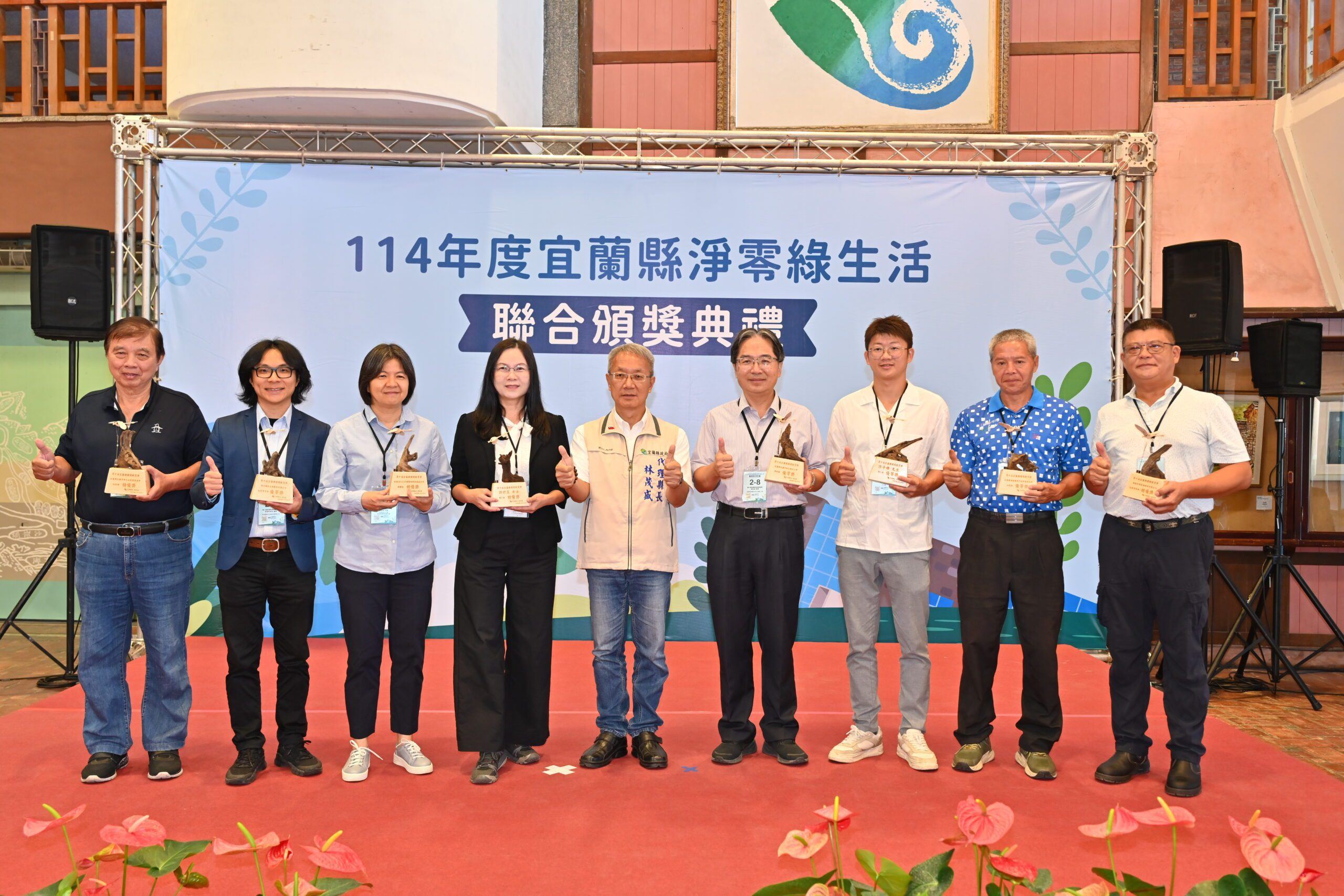 宜蘭縣環保局今(3)日在縣府縣民大廳舉辦「114年宜蘭縣淨零綠生活聯合頒獎典禮」,頒發獎項包括環境教育繪本創作比賽、第十屆宜蘭縣環境教育獎、第七屆國家企業環保獎、綠色採購申報1,000萬以上績優單位、綠色採購申報100萬以上績優單位、空氣品質淨化區優良認養單位以及環保低碳寺廟認證單位等7個獎項,涵蓋面向廣泛,充分展現環保行動在教育、企業、社區與文化層面的落實。