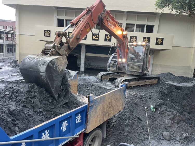 新竹縣政府教育局則迅速動員,媒合2組大型重機具團隊,包含怪手、山貓、斗車、抓斗車與鏟土車等重型設備,馬上進駐光復國中清淤現場。青年事務科更號召18位青年志工,自備高壓清洗機等工具,從10月4日起3天在校園清淤。