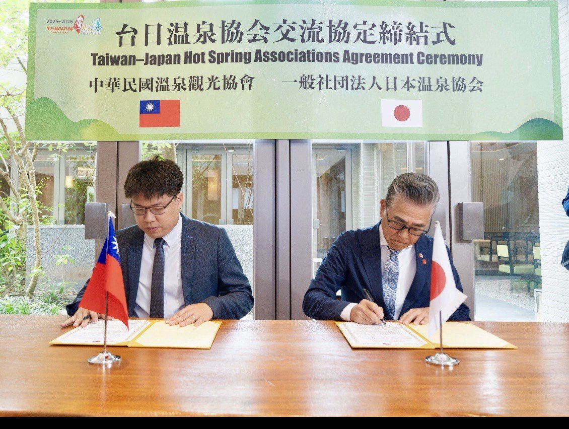 中華民國溫泉觀光協會與日本溫泉協會於 9 月 6 日上午在台東知本溫泉區金聯世紀酒店舉行「台日溫泉協會交流協定」簽署儀式,象徵台日兩國在溫泉產業合作邁入新階段。雙方將於溫泉理療、文化交流與產業發展等領域展開更緊密的合作,攜手推動東亞溫泉文化邁向國際。