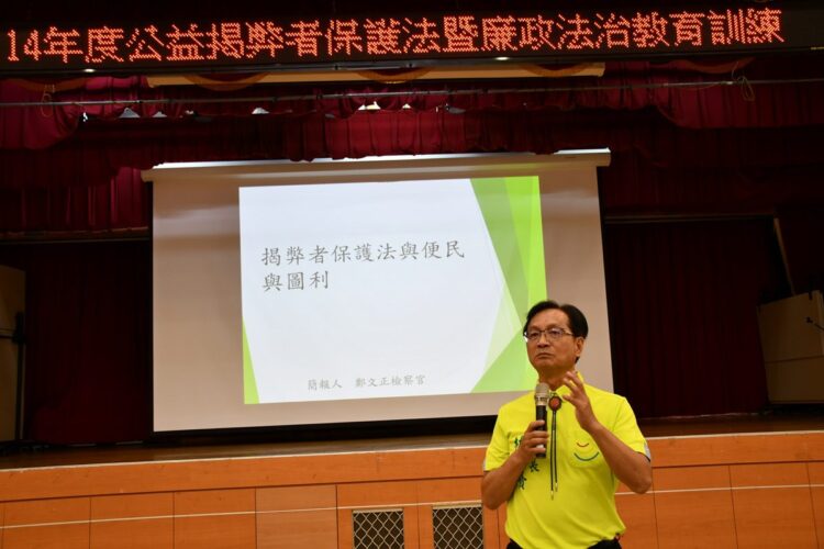 本次講習以114年7月22日正式施行的《公益揭弊者保護法》為核心,該法是我國首部保障揭弊者權益的專法,提供揭弊者更健全的法律支援與保護機制。主辦單位彰化市公所特別邀請彰化地方檢察署鄭文正檢察官擔任講師。鄭檢察官憑藉豐富的實務經驗與深厚法學專業,深入解析立法精神、制度內容與實務應用,並以案例說明揭弊制度的重要性與實際運作,令與會人員獲益良多。