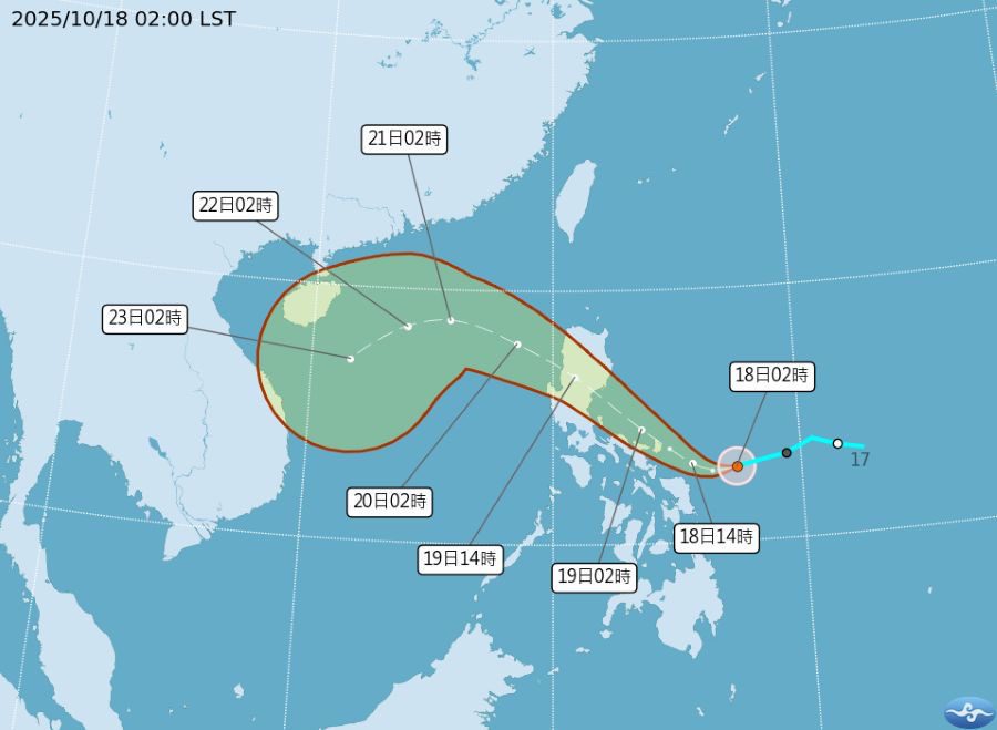 原位於菲律賓東方海面的熱帶性低氣壓TD27,已於今(18)天2時發展為輕度颱風「風神」,預計朝西轉西北方向前進,週末通過呂宋島進入南海,直接影響臺灣的機率低,但今晚起,東北季風也將南下,將與風神的外圍環流產生共伴效應,各地降雨機率增加,尤其迎風面地區易有大雨或豪雨,週日起北部、東部得防範豪大雨。