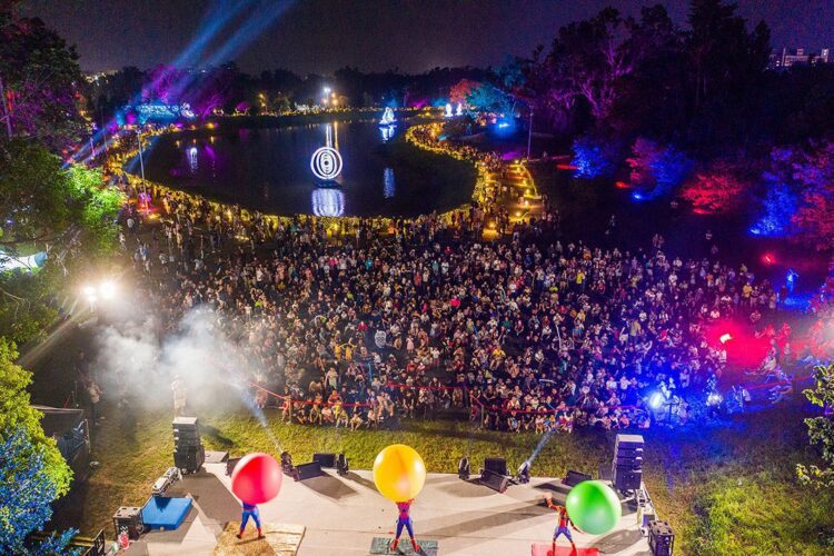 與歷屆不同的是,今年的光織影舞打破僅限夜間觀賞的模式。策展團隊以「白天拍照導向、夜晚光影體驗」為策劃主軸,讓展區裝置在自然光與燈影之間呈現雙重樣貌。白天,作品融入湖景與植栽,強調結構與材質的細節;夜晚則透過光影變化與聲音互動,轉化為沉浸式的視覺體驗。這項設計讓遊客白天與夜晚都能體驗不同風貌,成功擴大來訪時段,成為人次突破百萬的重要關鍵。