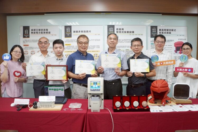吳建一研發長表示,「2025台灣創新技術博覽會」由經濟部、國科會、教育部等11個中央部會聯合主辦,於10月16日至18日在台北世貿中心舉行。大葉大學在競賽中脫穎而出,資訊工程學系蔡渙良主任的「低壓三相交流電無線電力監測模組」獲頒銀牌,電機工程學系黃登淵教授的「農業用雙臂式採果設備」榮獲銀牌,視光學系黃敬堯副教授的「漸進多焦點鏡片」獲得銀牌,設計學系賴建源副主任的「兼具照明功能之充氣式頭盔」獲頒銅牌。
