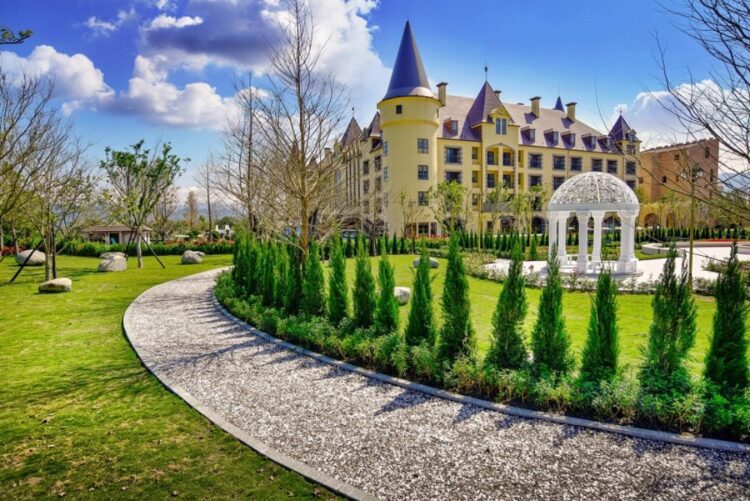 第一天的旅程從瑞穗天合國際觀光酒店展開。那是一座如夢似幻的歐洲城堡,紅磚屋頂在陽光下閃爍著溫暖的光。走進園區,彷彿進入童話國度:金色水樂園的滑水道、旋轉木馬、超跑俱樂部,讓親子與旅人都能暫時忘記現實的時序。