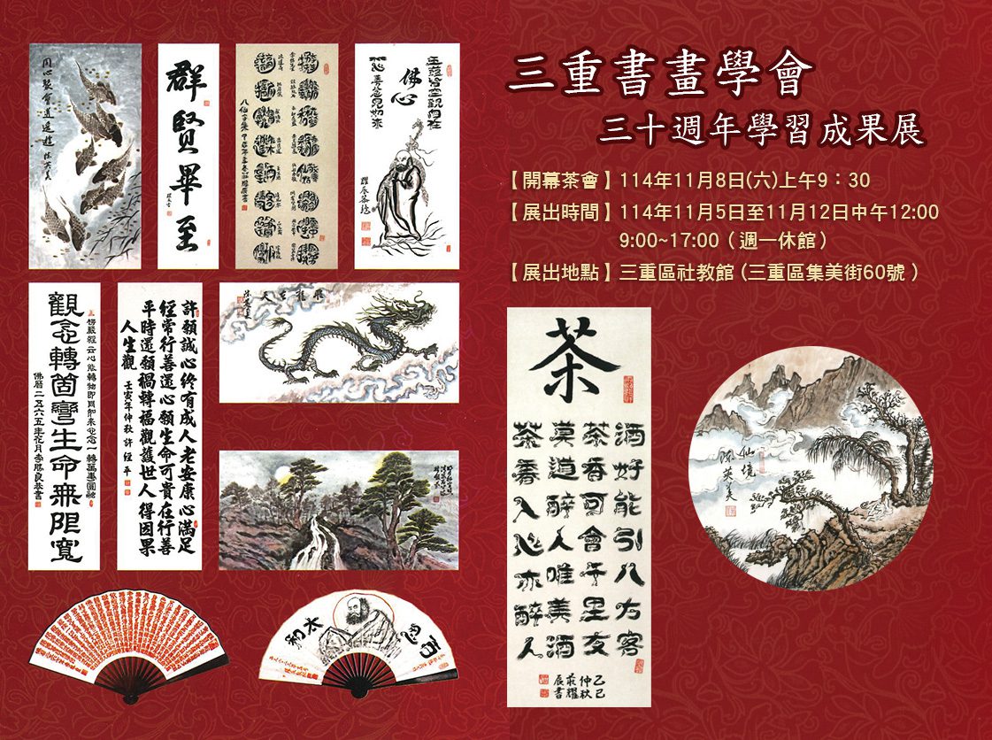 三重書畫學會將於今年11/8舉辦「三十週年學習成果展」開幕典禮,展現學會成員們多年來筆墨耕耘的豐碩成果。本次展覽匯集了學會師生們的山水、花鳥、書法等多元精彩作品,每一幅都承載著創作者對藝術的熱忱與心靈的體悟,處處可見傳統藝術的深度與生命力。