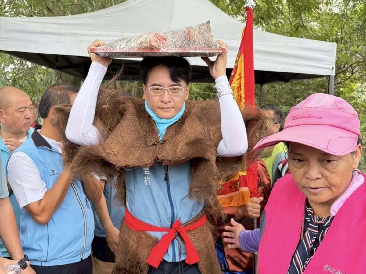 一年一度的「八堡圳跑水節」今日熱鬧登場,其中重要的「引水」儀式重現清康熙年間開圳的歷史場景,其中最具象徵意義的「簑衣引水人」角色,今年由柯呈枋擔任。他頭綁紅巾、身披簑衣、腳踏草鞋、頂著牲禮,親自下水領隊開閘放流,帶領跑水隊伍完成儀式,展現對地方水利文化的敬意與傳承決心。