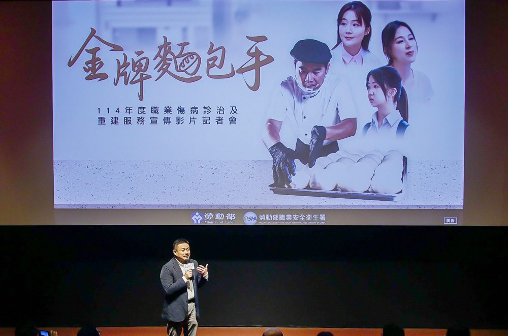 《金牌麵包手》影片,以一名擁有二十多年資歷的麵包師傅為主角,描繪雙手創造烘焙界金牌成就的過程,因長期工作中反覆重複的動作,導致雙手出現麻木、痠痛及無力等症狀,卻誤以為只是一般工作疲勞所致,忽略可能罹患職業性腕隧道症候群的風險。藉由劇情轉折,傳達當勞工自覺疑似職業病時,可至勞動部認可職業傷病診治專責醫院尋求職業病諮詢、評估、診治及復工等相關協助,藉此帶出「正視職業病,及早就醫」之意象,期能透過戲劇詮釋,提升社會大眾對勞工健康議題的關注。