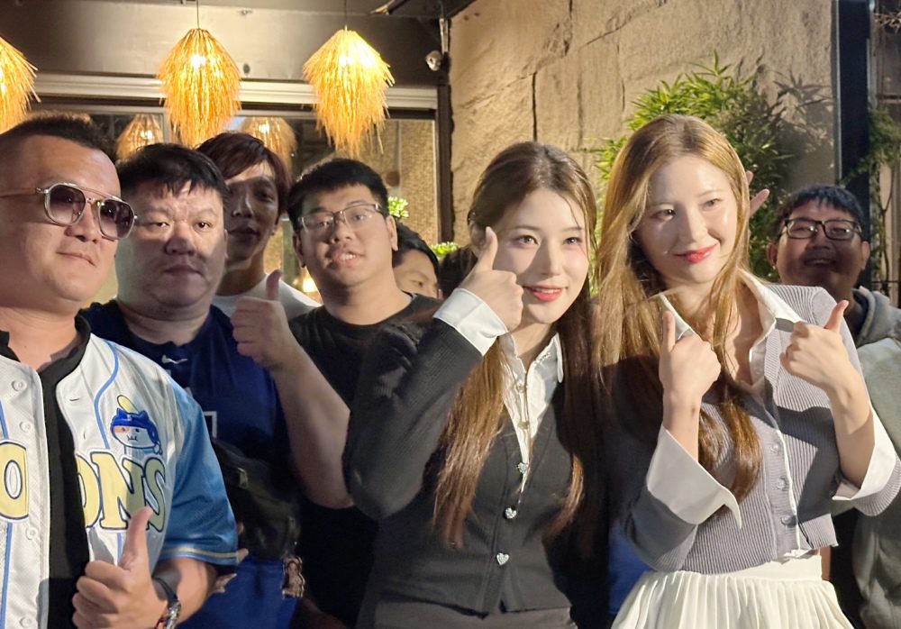 來自韓國職棒KT Wiz的人氣啦啦隊雙姝李藝彬、金海莉,3日晚間現身竹北,擔任新開幕的「陸本木燒肉」一日店長。兩人親手替粉絲烤肉、互動合照,現場尖叫聲不斷,氣氛火熱宛如演唱會。