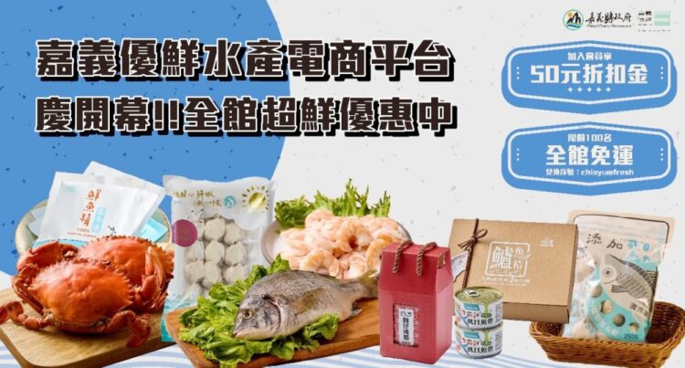 慶祝「嘉義優鮮」水產電商平台開幕,推出了多重優惠好康起凡加入會員即可獲得50元購物金,不限消費金額皆可折抵使用,同時前100名下單者可獲不限金額免運優惠(兌換序號:chiayumfresh)。另外也推出多項搶手商品優惠活動,例如九龍活海產熟凍紅蟳(275g±25g)優惠價只要600元(原價650元)、鑫溶水產烏魚子系列產品全面限定優惠,烏魚子醬兩罐組優惠價1,000元(原價1,760元)、蝦覓世界特大尾5.5°藥膳紹興醉蝦三包組優惠價960元(原價1,005元)等,多樣豐富的促銷組合,讓民眾能以實惠價格輕鬆選購。