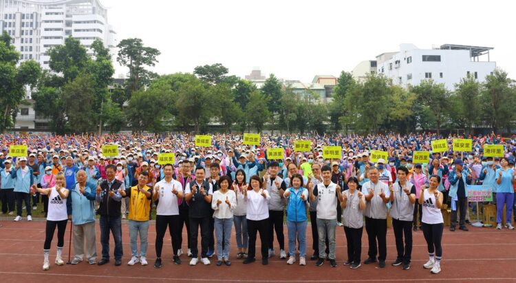 嘉義市政府於今(8)日舉辦長青健行活動,鼓勵銀髮族樂於戶外休閒娛樂、拓展生活圈。活動吸引各里60歲以上長輩及家人一同組隊報名,近3000人一早齊聚博愛國小,由市長黃敏惠帶領參加民眾一同暖身,並為活動鳴槍及加油。