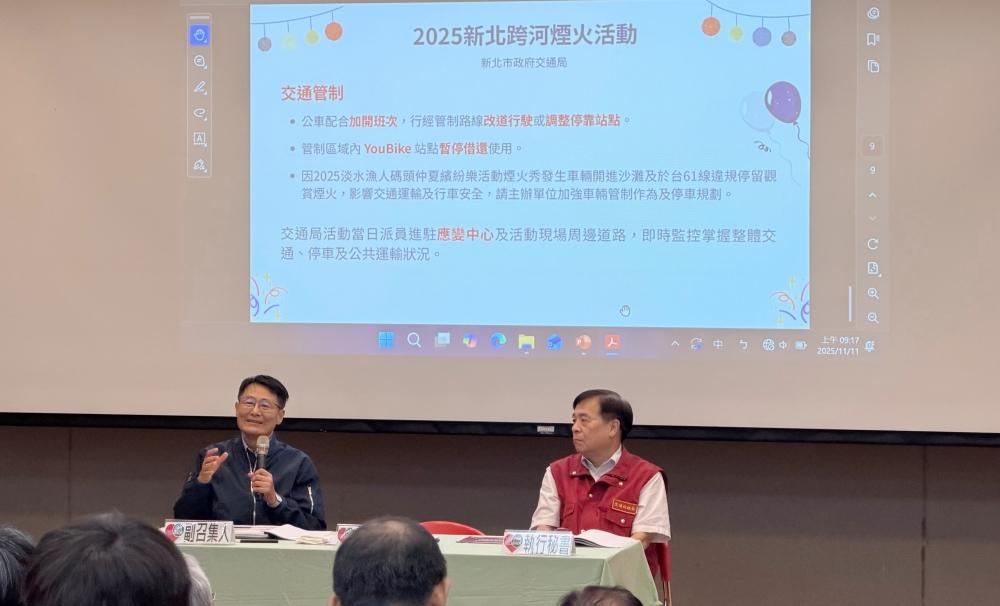 新北市長侯友宜11/11日主持道安會報,針對「2025新北歡樂耶誕城」將於本週五(14日)起至12月28日在板橋及府中辦理一系列活動,預計將吸引大量觀光人潮,侯友宜指示觀光旅遊局、交通局及警察局共同擬定交通維持計畫,涵蓋三鐵運輸、公車、Youbike及行人等多面向交通管制、疏運、引導等措施,確保活動期間交通順暢與民眾安全。