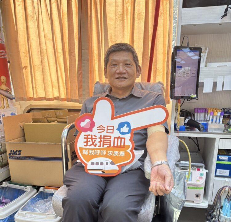 ▲田中的釋自嚴師父特地前來排隊捐血。(圖/彰化高鐵站提供)