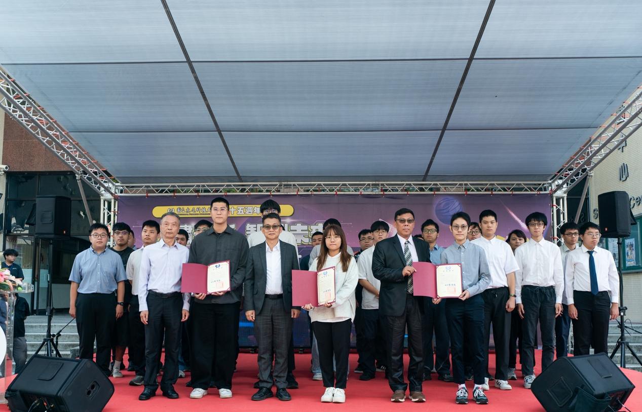 今年校慶馬來西亞畢業校友會特別訂製象徵文化傳承的「月亮風箏」作為賀禮,並由馬來西亞商業及工業協會蔡瑞龍副理事長代為轉贈,展現海外校友對母校的深厚感謝。蔡瑞龍副理事長致詞表示,虎科大近年積極推動國際教育與多元文化學習,吸引包括馬來西亞在內的東南亞學生來台就讀。此份文化賀禮象徵跨文化學習成果,也為45週年校慶增添深具人文交流意涵的溫暖亮點。