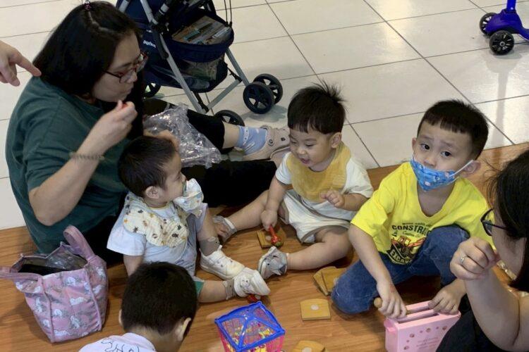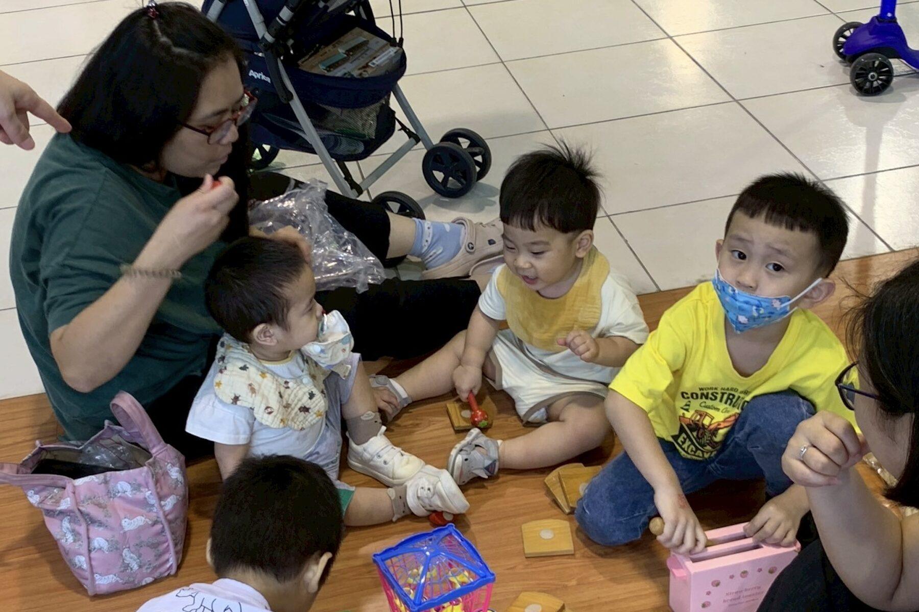 ▲家長陪伴孩子一起玩教玩具。(圖/新北市社會局 提供)