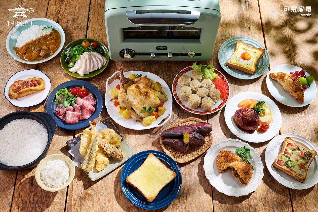更特別的是,這台烤箱還可煮飯:附贈特製炊飯鍋,模擬日式土鍋效果,30分鐘煮出粒粒分明的白飯。外觀設計也走質感路線:復古旋鈕、霧面白與森林綠配色,打造日系生活氛圍。