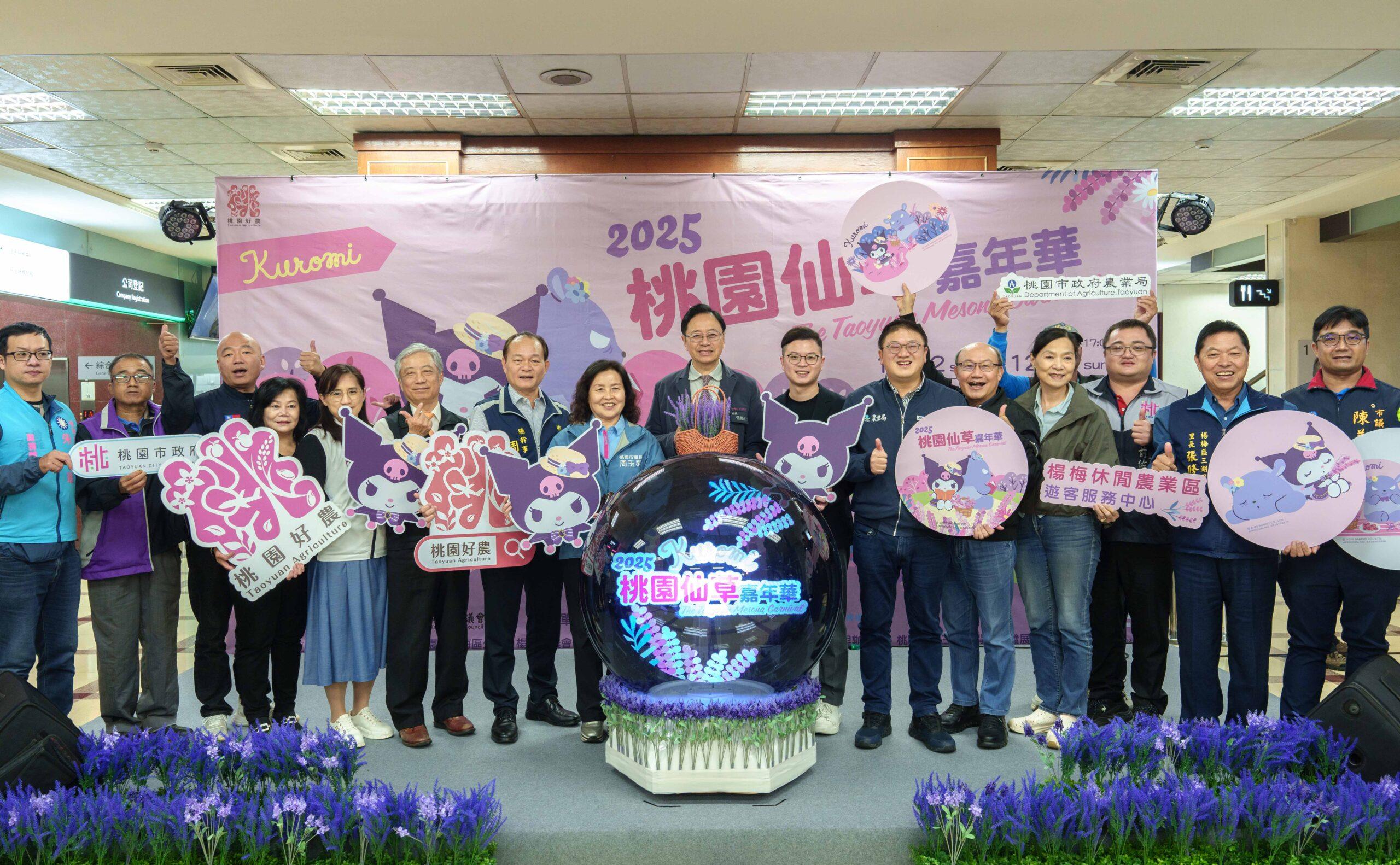 「2025桃園仙草嘉年華」,今年以「花開紫境・相遇楊梅」為主題,並有「酷洛米」裝置搭配浪漫粉紫花海,11月22日起至12月7日・將在楊梅休閒農業區盛大登場。今(18)日於桃園市政府舉行宣告記者會,由市長張善政率領農業局、文化局及楊梅區公所等單位共同出席,並與貴賓一同啟動象徵「希望與綻放」的3D全息光球,宣告「桃園仙草嘉年華」正式啟動。