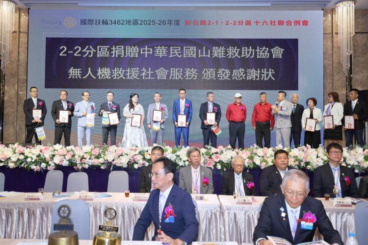 國際扶輪3462地區彰化縣 2-2 分區所屬八個扶輪社今日聯手共同捐贈救援無人機與穿越機予中華民國山難救助協會,期望提升山域搜救效率,為台灣登山者打造更堅實的安全防護網。在前總監林伯龍Doctor推薦和協助下,此次參與捐贈的扶輪社包括彰化中區、鹿港、彰化松柏、彰化東區、鹿港東區、彰化東北、花壇及彰化福興東區等八社,展現分區高度的凝聚力與在地公益能量。