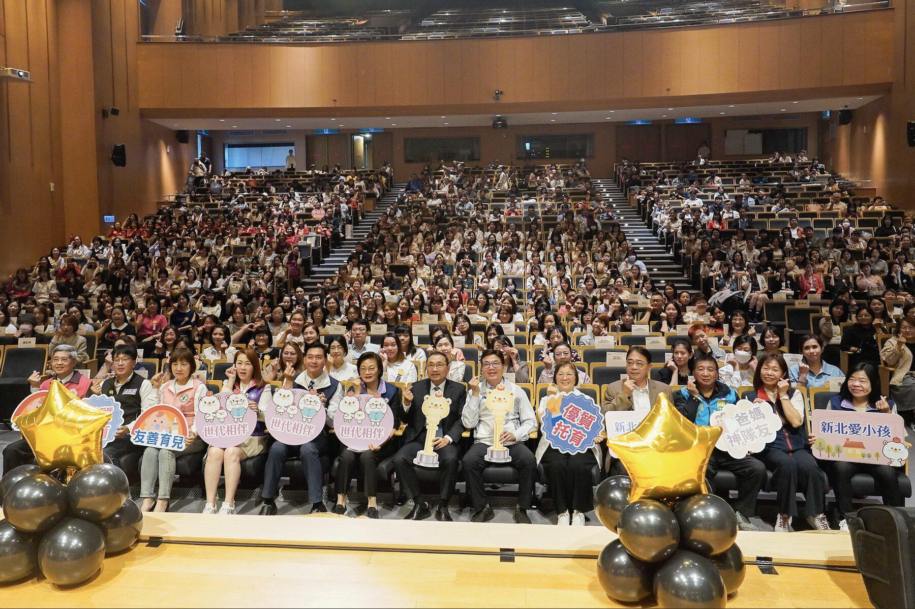 新北市社會局於23日舉辦「嬰幼兒照顧人員及托嬰機構表揚大會」,由市長侯友宜親自表揚255位托育人員、托嬰機構和居家托育專職人員,以及177家評鑑優、甲等機構及親子館等服務單位。