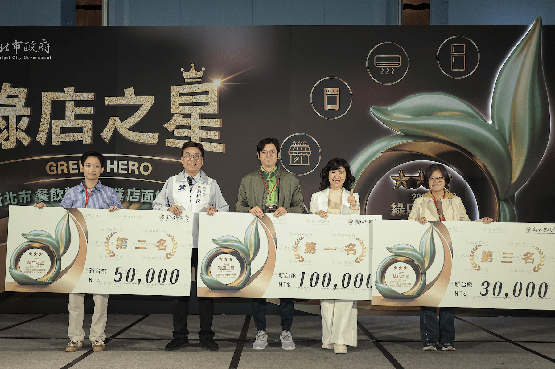 ▲新北市政府(26)日舉行首屆「綠店之星Green Hero–新北市餐飲類服務業店面能效分級」頒獎典禮。(圖/新北市經發局 提供)
