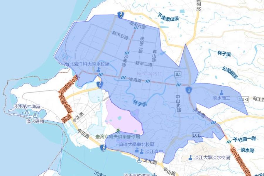 自來水公司第一區管理處公告,因淡水區關渡橋機車引道旁1000mmDIP幹管漏水搶修,淡水,新北淡水中興里、北投里、北新里、協元里、埤島里、大庄里、崁頂里、文化里、新春里、新民里、新義里、新興里、正德里、水碓里、沙崙里、油車里,共16個村里停水,時間自11月28日中午12:00至11月30日凌晨02:00,停水時間長達38小時。
