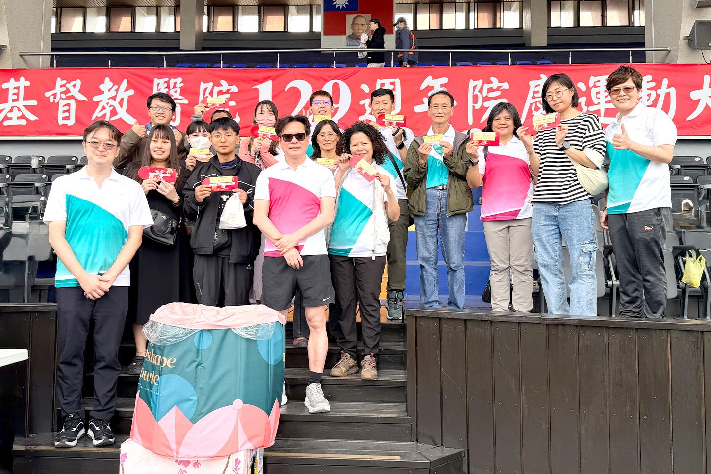 現場在董事會與總院長率領主管級幹部進行「彰基領航」健走後,園遊會熱鬧開張,各式美食與創意攤位吸引大批同仁與家屬參與。運動賽事更是高潮迭起,包括拔河、大隊接力及多項趣味競賽,現場加油聲震耳欲聾,參賽隊伍全力以赴,展現團隊合作與凝聚力。下午總院長親自抽出歐洲雙人來回機票等大獎後在院牧部代主任肯當·迪洛安牧師禱告後圓滿落幕。