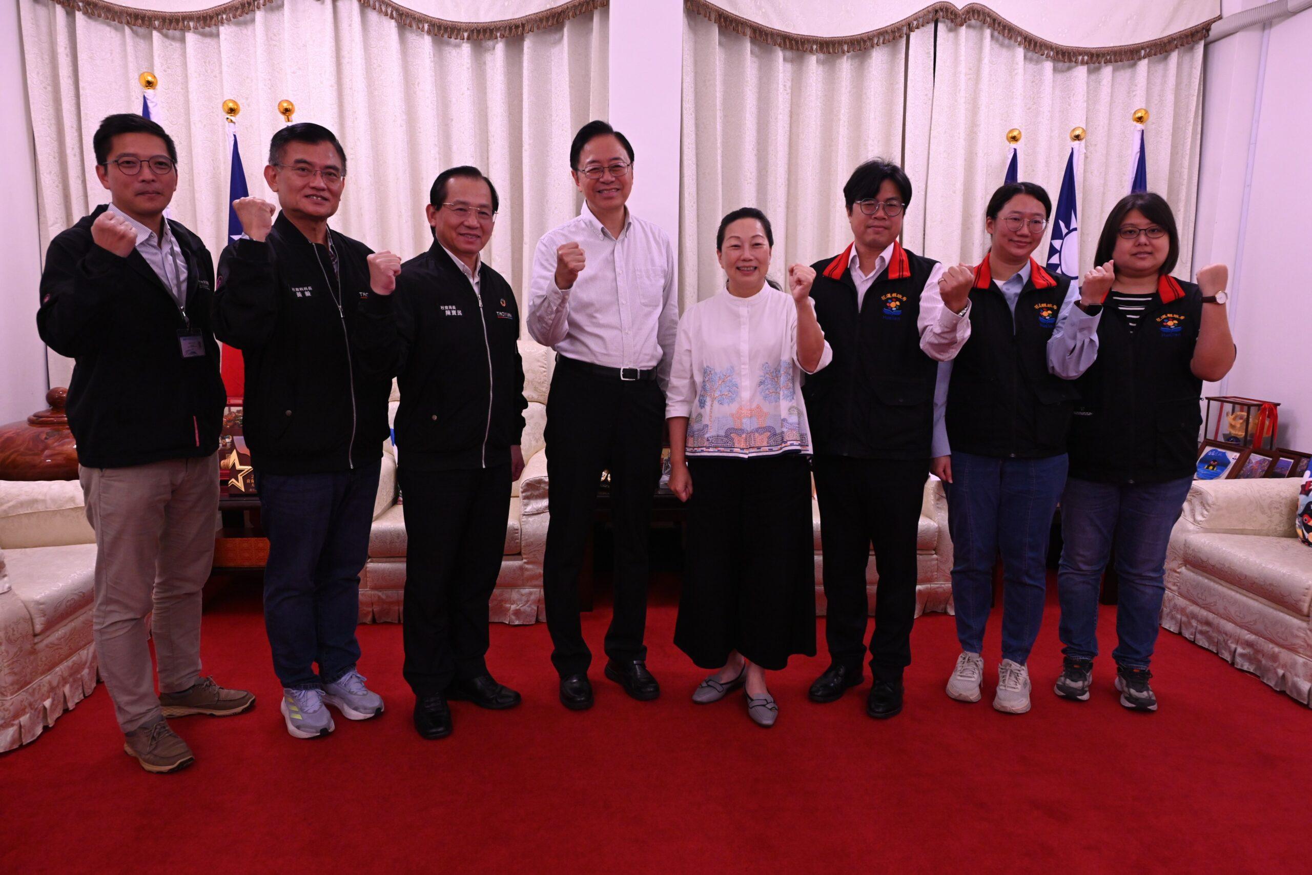 ▲桃園市長張善政(左)關心花蓮災後復原,縣長徐榛蔚期盼協力拚觀光。