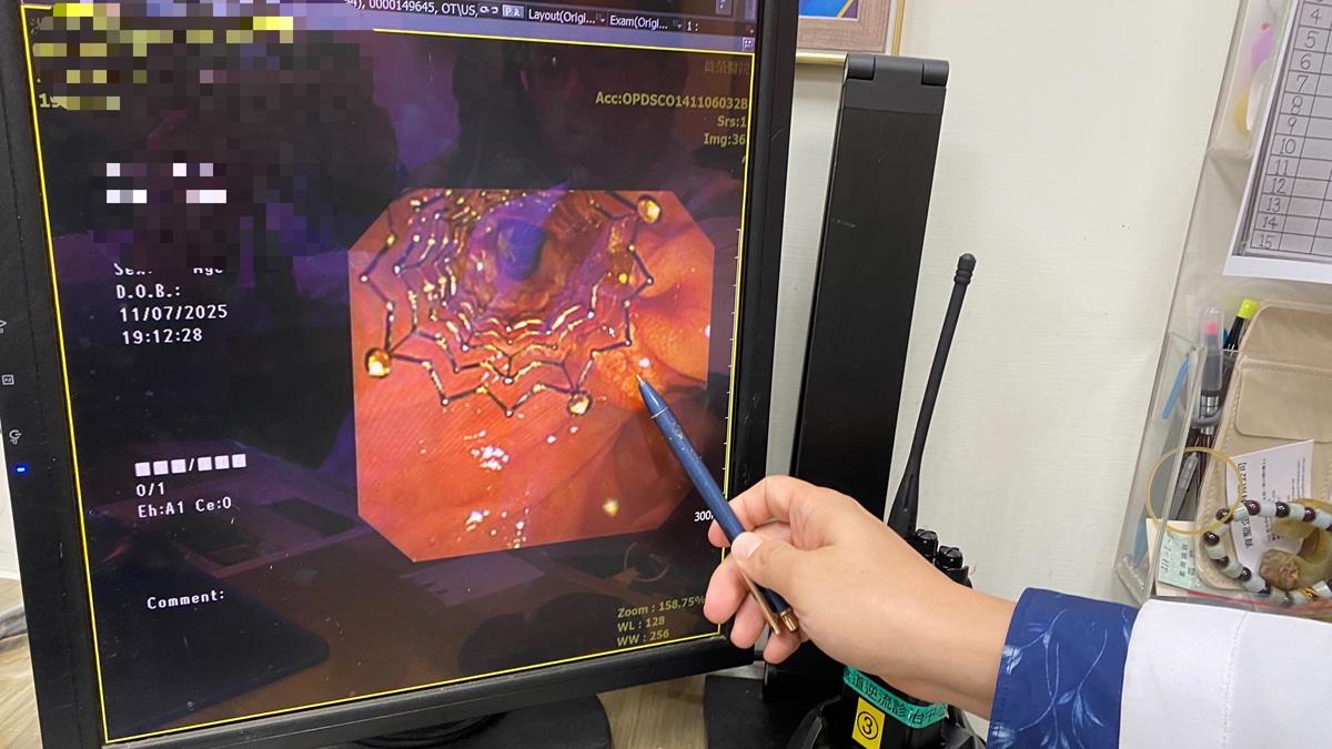 曾宇辰醫師指出,患者因膽道腫瘤數月前在他院接受手術治療,術後併發膽道狹窄,曾接受逆行性胰膽管鏡(ERCP)並置放塑膠支架。日常患者因發燒腹痛,家人將她送到員榮醫院員生院區急診,收治住院,住院期間檢查顯示,患者肝功能異常,黃疸膽道指數亦明顯升高。經醫療團隊與患者溝通討論後,符合惡性腫瘤適應症,曾宇辰主治醫師建議將原有塑膠支架更換為金屬支架,以改善膽汁引流情況,降低再次阻塞風險。