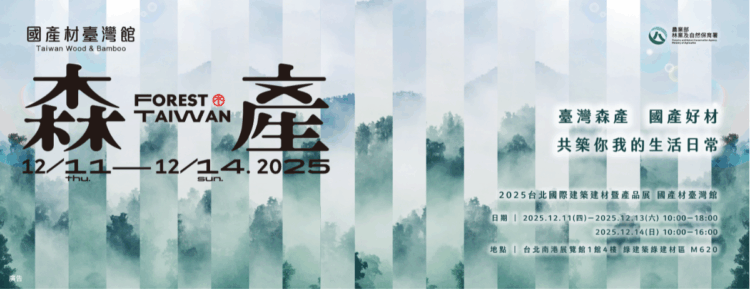 從森林到城市、從山林到建築,木頭不再只是建材!臺灣在地的森林產業,以人工林永續經營、友善採伐、加工設計到循環再利用,正翻轉國人對傳統林業的想像。2025年第37屆台北國際建築建材暨產品展即將於12月11日至14日在南港展覽館一館4樓M620登場,連續九年參與盛會的農業部林業及自然保育署今年攜手20家國內優質廠商共同以「國產材臺灣館」參展,主題「森產」強調源自臺灣森林的好材,串聯森林、職人、設計與城市,展現國產木竹材從山林出發、融入生活、邁向永續未來。