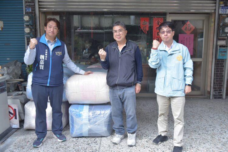 由於捐贈物資數量龐大,花蓮市公所清潔隊主動協助物資存放、整理及載運作業,並由魏嘉賢偕同市公所祕書蘇浩然、清潔隊同仁南下光復鄉,將愛心 棉被等寢具分送各村落,期盼把社會關懷第一時間送到需要的對象手中。