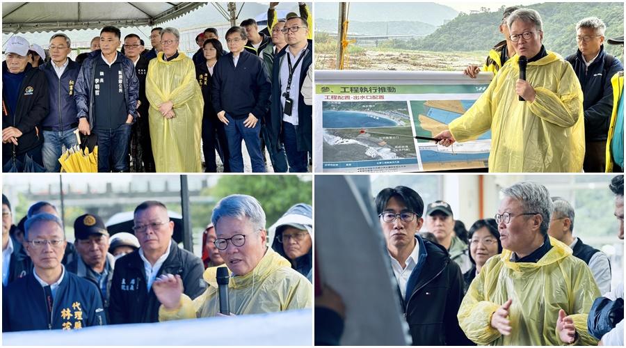 行政院公共工程委員會主委陳金德,率同委員會審查團隊,與經濟部水利署第一河川分署、宜蘭縣政府及相關單位共同就分洪道工程設計內容進行全面檢視。