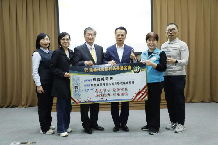 嘉義縣多所校園今年7月受丹娜絲颱風影響出現災損,凱基社會福利慈善基金會捐贈10所學校復建經費共計308萬元,協助校園復原。嘉義縣政府今(15)日辦理感謝記者會,由縣長翁章梁代表出席,基金會執行長曾錦隆及相關代表到場,縣府並安排學生表演及校長致贈感謝卡,表達對基金會支持校園復建的謝意。
