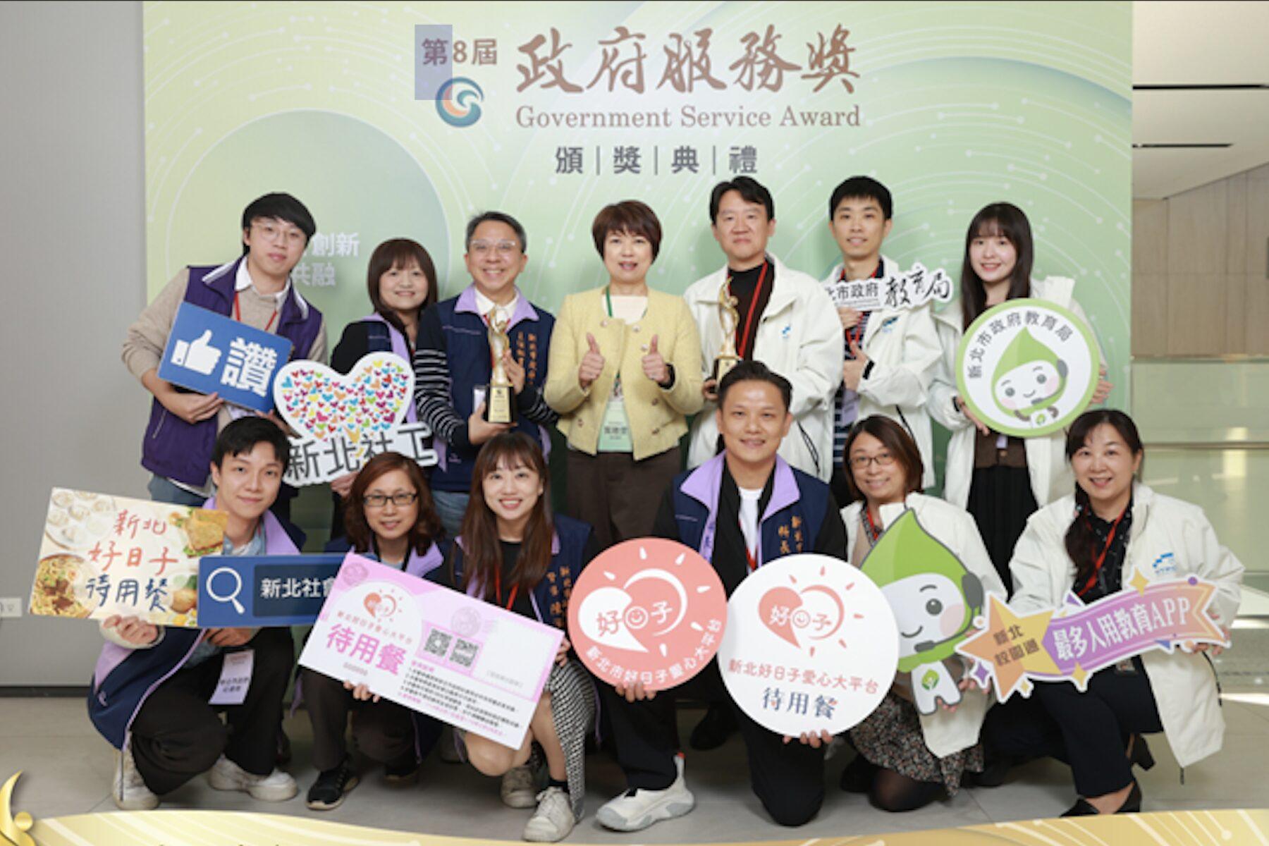 「政府服務獎」是全國各級政府機關為民服務的最高榮譽,新北市府教育局及社會局從全國144個參獎機關中脫穎而出,分別獲得「數位創新加值」及「社會創新共融」獎項的肯定。國發會於(15)日下午於政治大學公共行政及企業管理教育中心舉行頒獎典禮,市府由龔副秘書長雅雯率隊前往領獎。