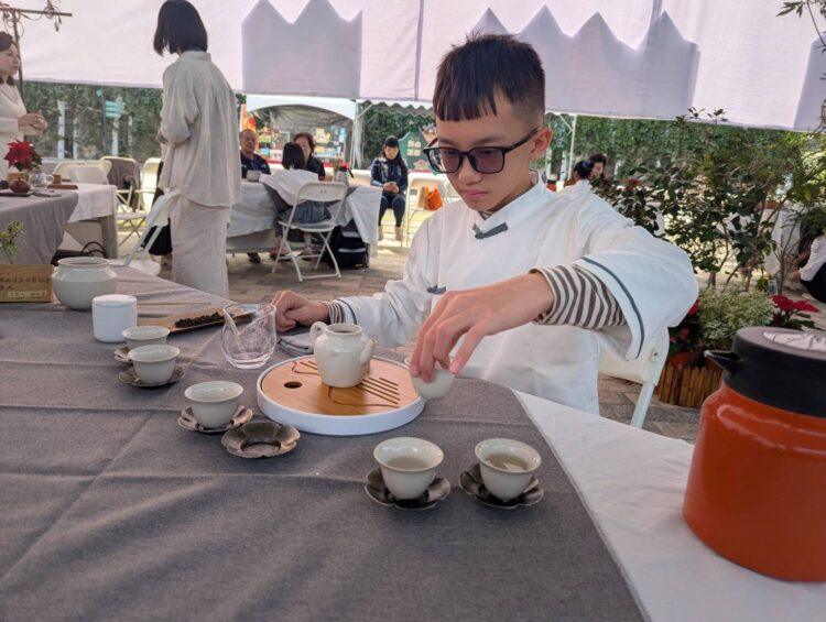 嘉義縣新住民茶藝協會15日於「高山茶都.嘉義—嘉義茶博會」會場舉辦「小小泡茶師成果發表會」,由學童擔任司茶人,現場泡茶招待來賓。其中最年幼的茶師僅國小一年級,泡茶過程手法穩定、動作熟練,獲得現場一致肯定。