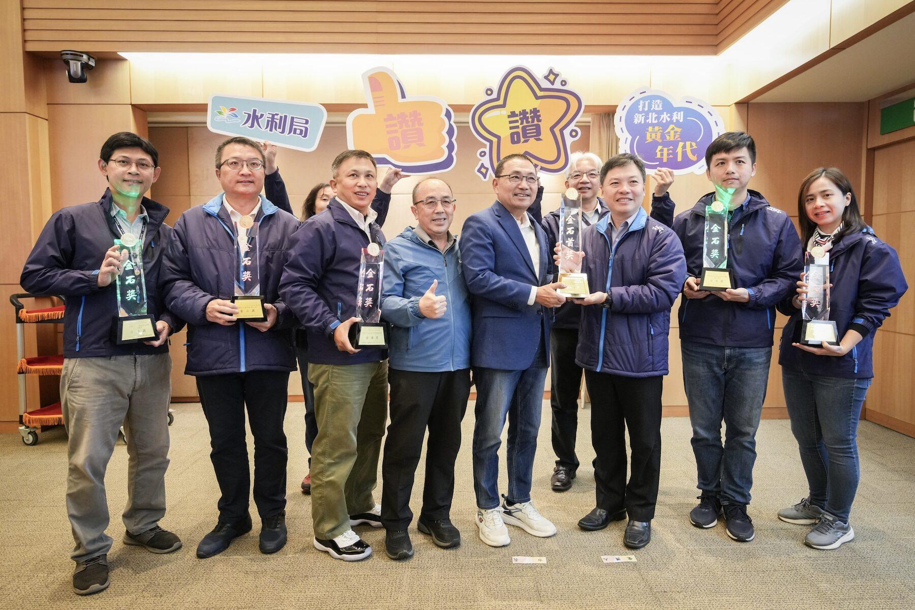 侯友宜表示,「水育樂」部分,「淡水河五股蘆洲沿岸水環境整體改善計畫(第二期)」以安全舒適的河濱木平台、水路交織的多元生態及石材媒合與景點營造等三大重點,活化五股八里沿岸的文化特色節點讓彼此串接,並鑲嵌入生態元素,塑造出友善居民、吸引遊客的A+級新生活水岸,獲得施工組金石獎及金石首獎的殊榮;「淡水河金色水岸大河門戶改善工程」則以河岸亮點空間營造、自行車道拓寬優化及強化路線指引標誌等三大重點,提出沿線點狀空間塑造的構想,以全面整體性的發展願景,打造具獨特魅力的國際級淡水河岸新風貌,獲得規劃組金石獎殊榮。