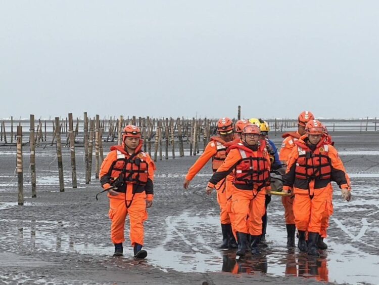今(18)日早晨,海巡及消防人員於海尾蚵道集結;6時34分,在地蚵農通報於距岸1公里處發現倒地民眾,消防及海巡人員利用長背板,涉水將民眾搬運回岸邊,經查看已無生命跡象,並確認為昨(17)日落水男子,後續將協助處理相驗事宜。