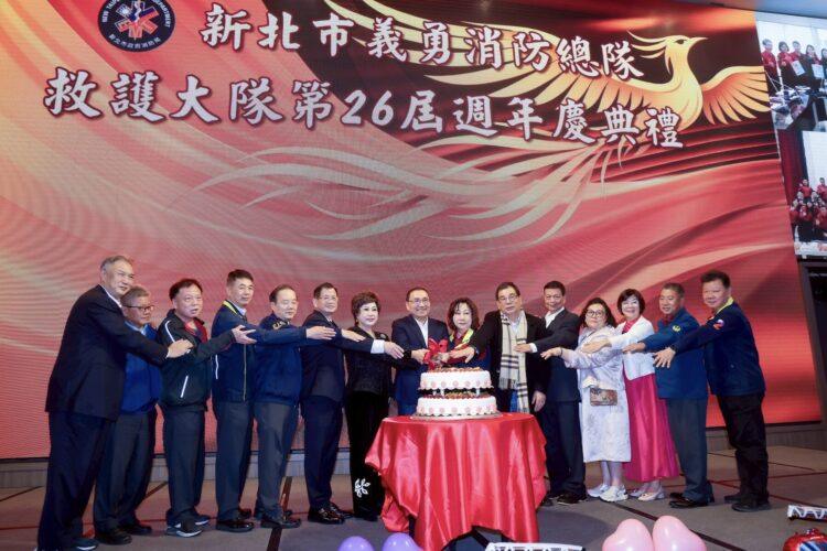 新北市政府(30)日舉行「新北市義勇消防總隊救護大隊第26屆週年慶典禮」,新北市長侯友宜親臨主持並頒贈36位救護義消及3個救護分隊績優獎項,以表達肯定與感謝之意,勉勵救護義消們持續守護新北市民生命安全。