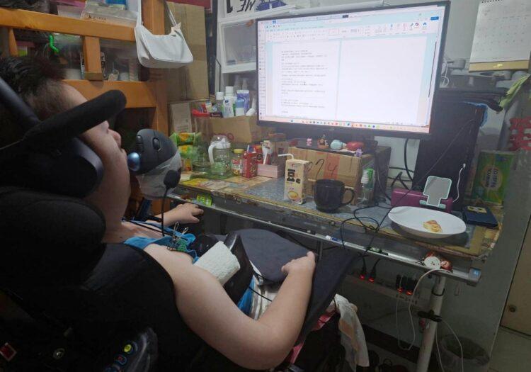 ▲黃瀅芝的作業通常在電腦前以腳操作滑鼠與鍵盤,完成企畫。(圖/黃瀅芝提供)